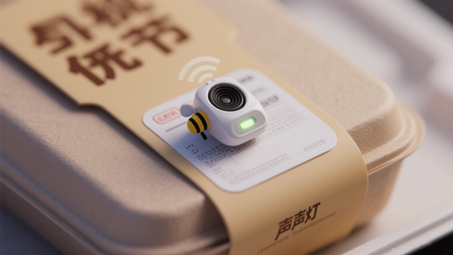 選用超高頻(UHF)標簽,集成聲光模塊,無需額外供電設備,標簽生命周期與商品使用周期匹配,商品下架后隨包裝統一處理。聲光模塊包含微型蜂鳴器與單色 LED 燈,觸發后通過聲光信號提供清晰定位指引,滿足商品查找需求。如圖 1 所示,為聲光 RFID 標簽實物圖,其小巧的外觀可便捷地貼附于各類外賣商品包裝上 。