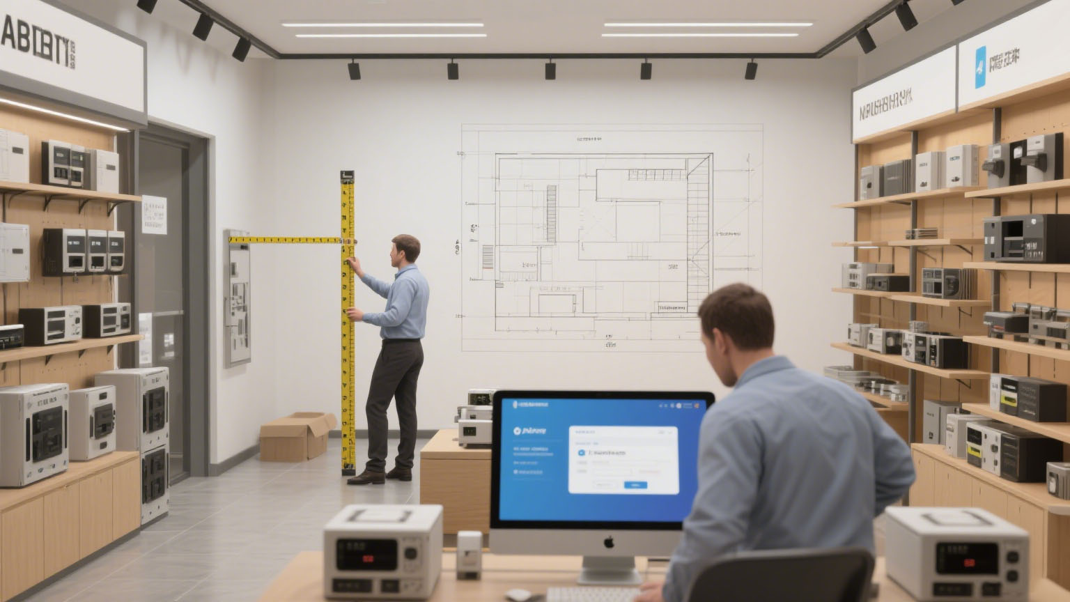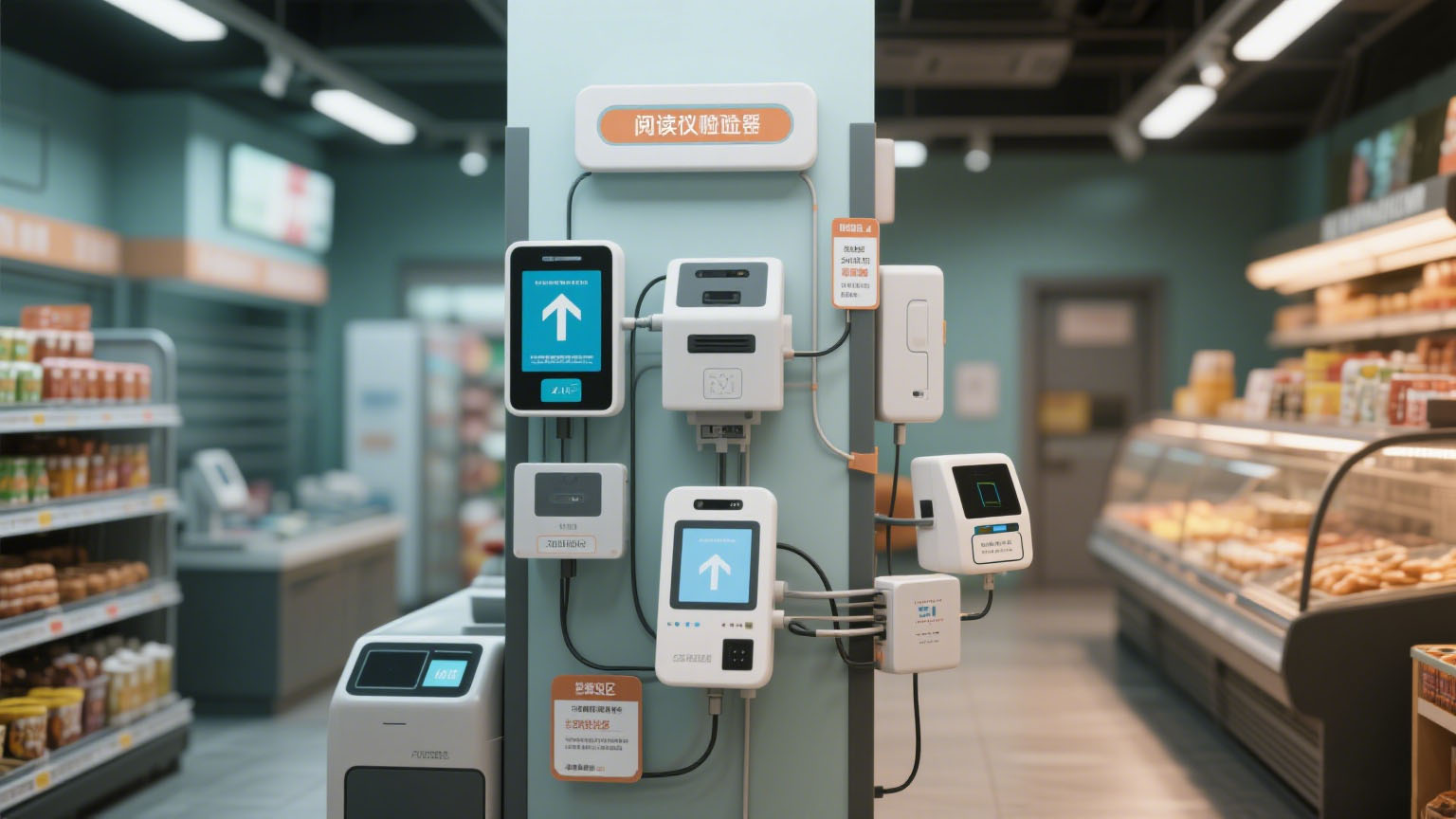 完成閱讀器、貨架指示器、取餐核驗區設備的安裝調試,確保設備正常聯動;商品出廠時同步完成標簽貼裝,減少店鋪端操作環節。圖 5 展示了設備安裝調試過程 。