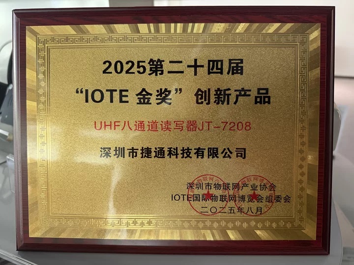 展會同期舉辦的評選活動中,捷通科技憑借卓越的產品創(chuàng)新實力,成功斬獲 2025 第二十四屆 “IOTE 金獎” 創(chuàng)新產品。這份榮譽,既是對我們深耕 RFID 讀寫技術領域的高度認可,更將化作動力,推動我們持續(xù)深化技術創(chuàng)新、加速場景融合,為行業(yè)智慧升級注入強勁動能。